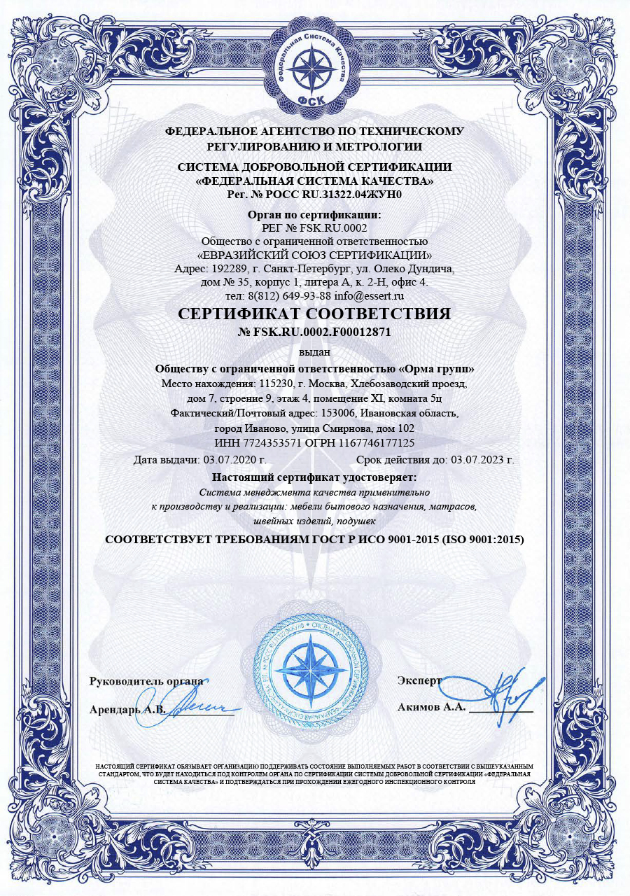 В составе матраса используется Ormafoam (ППУ), которая обладает повышенной упругостью, функциональностью и долговечностью.